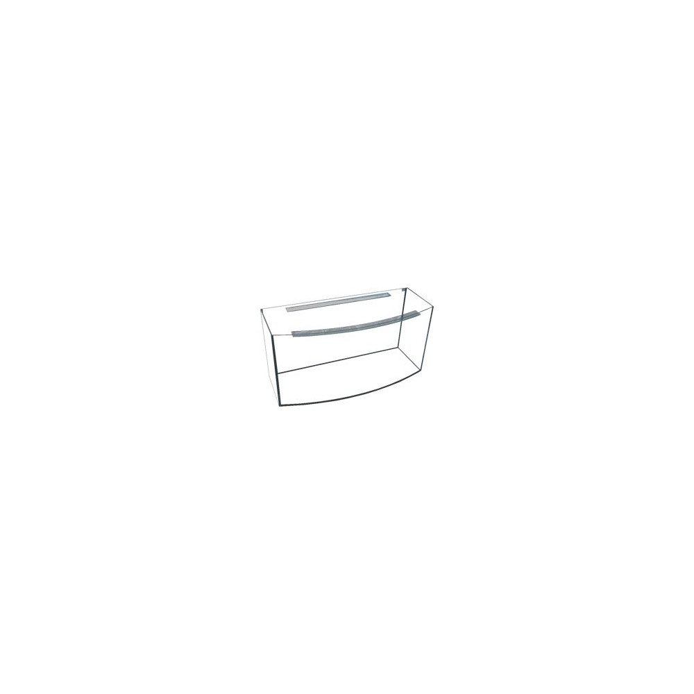 Stiklinis panoraminis akvariumas be įrangos. Visos akvariumo stiklų briaunos šlifuotos. Juoda silikono spalva.