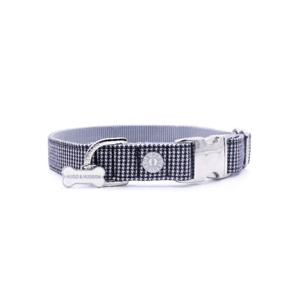 „Hugo&Hudson“ – kokybiškas, stilingas ir tvirtas antkaklis šuniui su metaline sagtimi, L dydžio. Margintas „Houndstooth“ raštu.