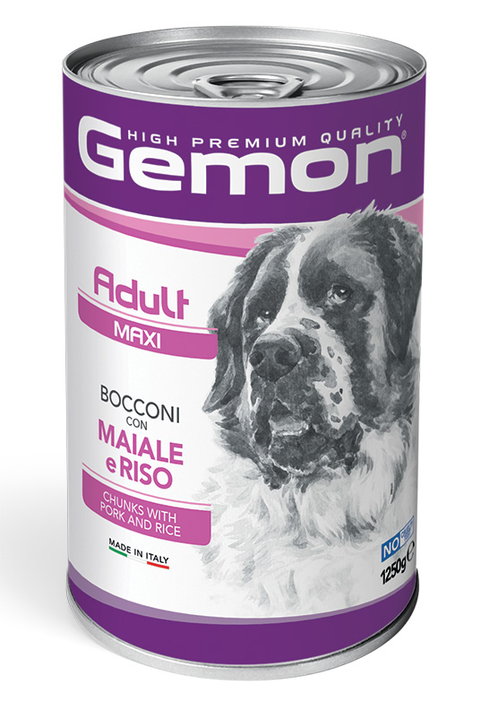 GEMON HIGH PREMIUM QUALITY – tai visaverčių pašarų linija, pagaminta iš kokybiškų ingredientų, kruopščiai atrinktų pagal jūsų augintinių mitybos poreikius. Receptai itin skanūs, pritaikyti skirtingo amžiaus ir gyvenimo būdo gyvūnams. Be pridėtinių dirbtinių dažiklių ir konservantų. Pagaminta Italijoje. GEMON CHUNKS WITH PORK AND RICE – tai visavertis pašaras suaugusiems didelių veislių šunims, sukurtas suteikti visas būtinas maistines medžiagas kasdieniam jūsų keturkojo draugo gyvybingumui.