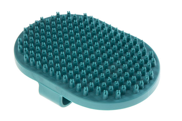 Guminės šukos ant delno augintinių kailio priežiūrai.