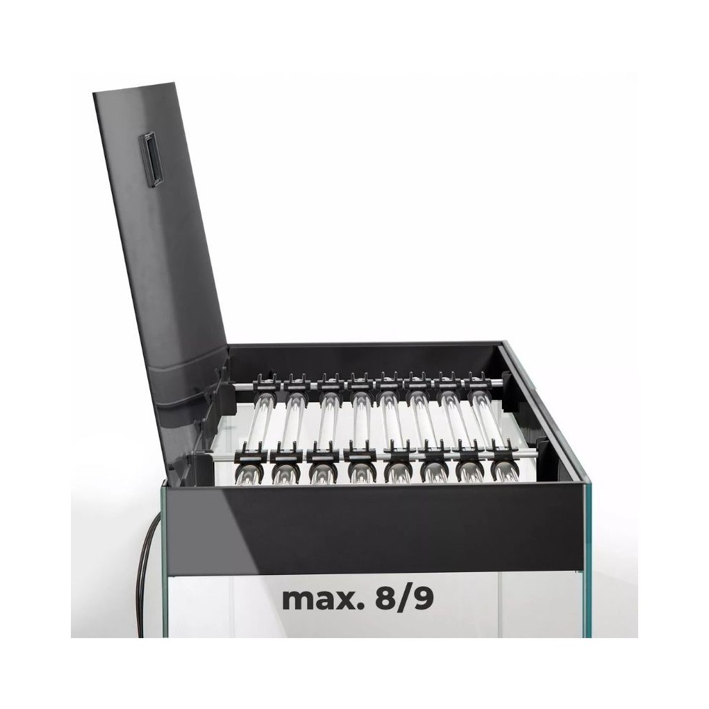 dangtyje įmontuotas LED apšvietimas, aprūpinantis šviesa akvariumo augalus. Dangčio galinėje sienelėje yra specialios angos, kurių gali prireikti išoriniams filtrams ar kitai įrangai įrengti;