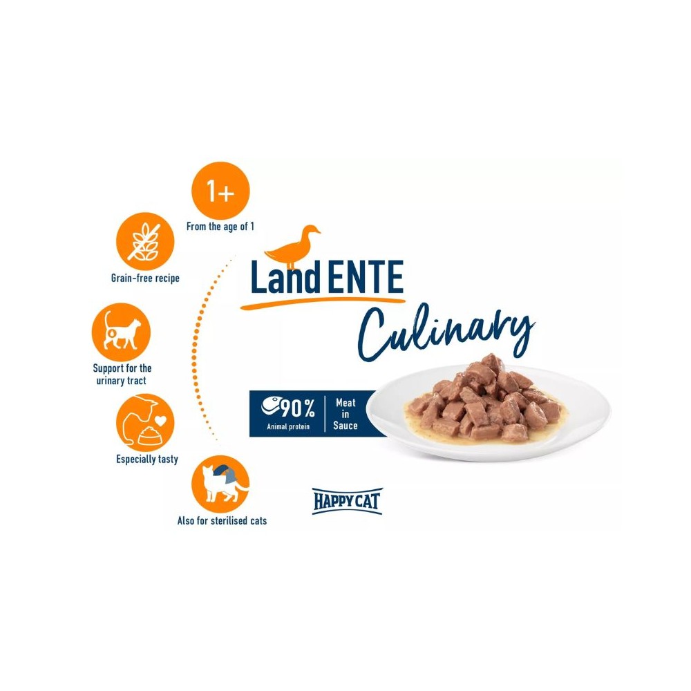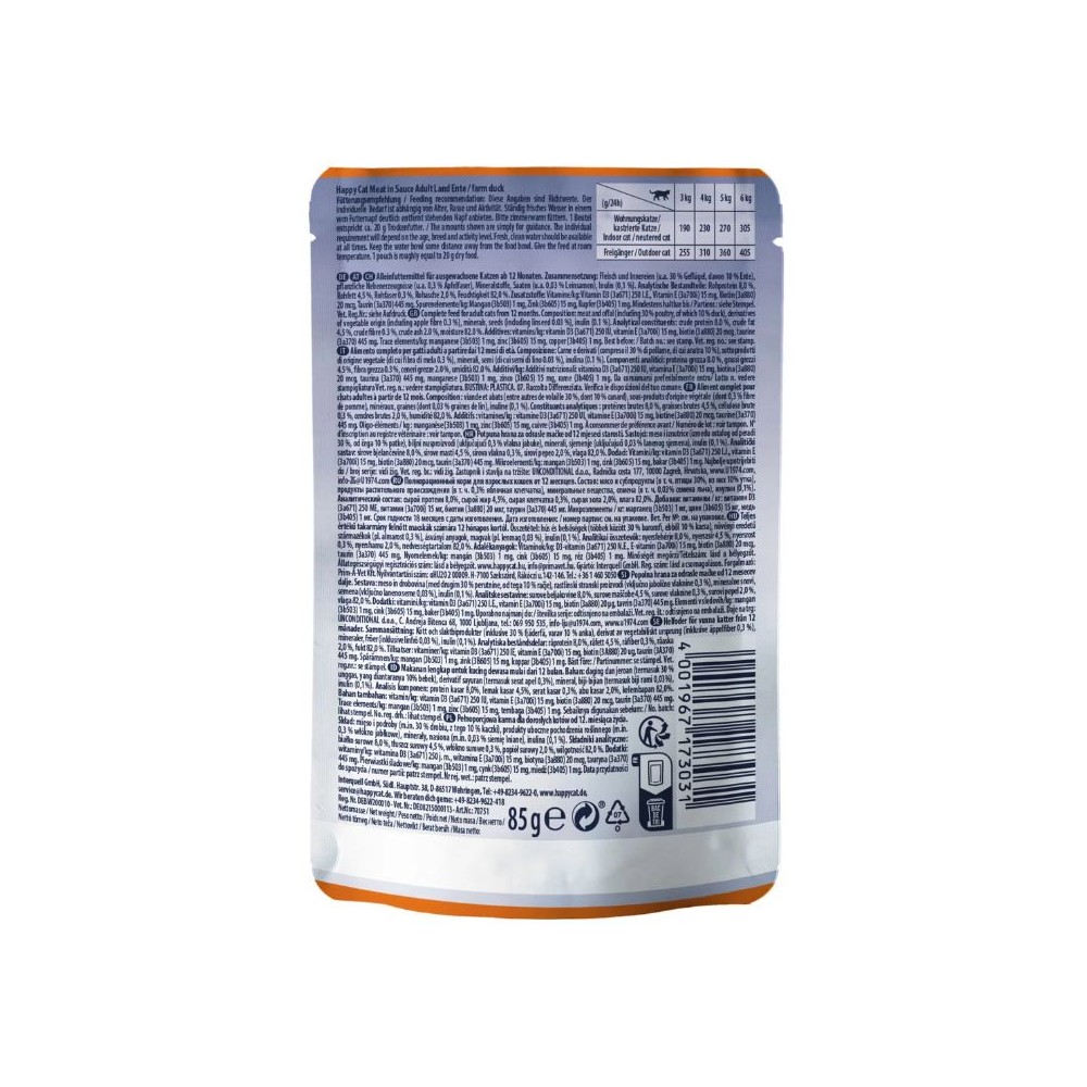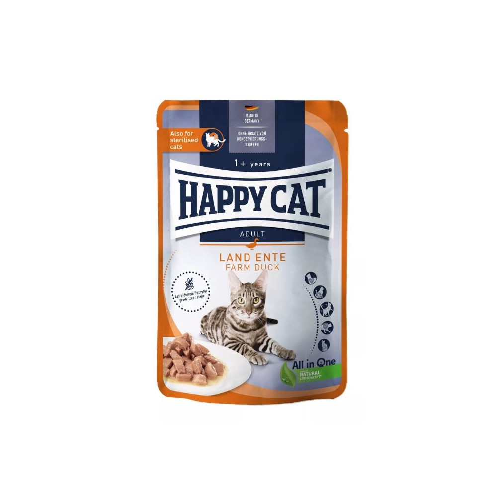 „Happy Cat Meat in Sauce“ guliašas su antiena yra kruopščiai paruoštas su aukštos kokybės mėsa ir gardžiu padažu. Guliašas padeda palaikyti sveikus šlapimo takus ir tinka sterilizuotoms katėms.
