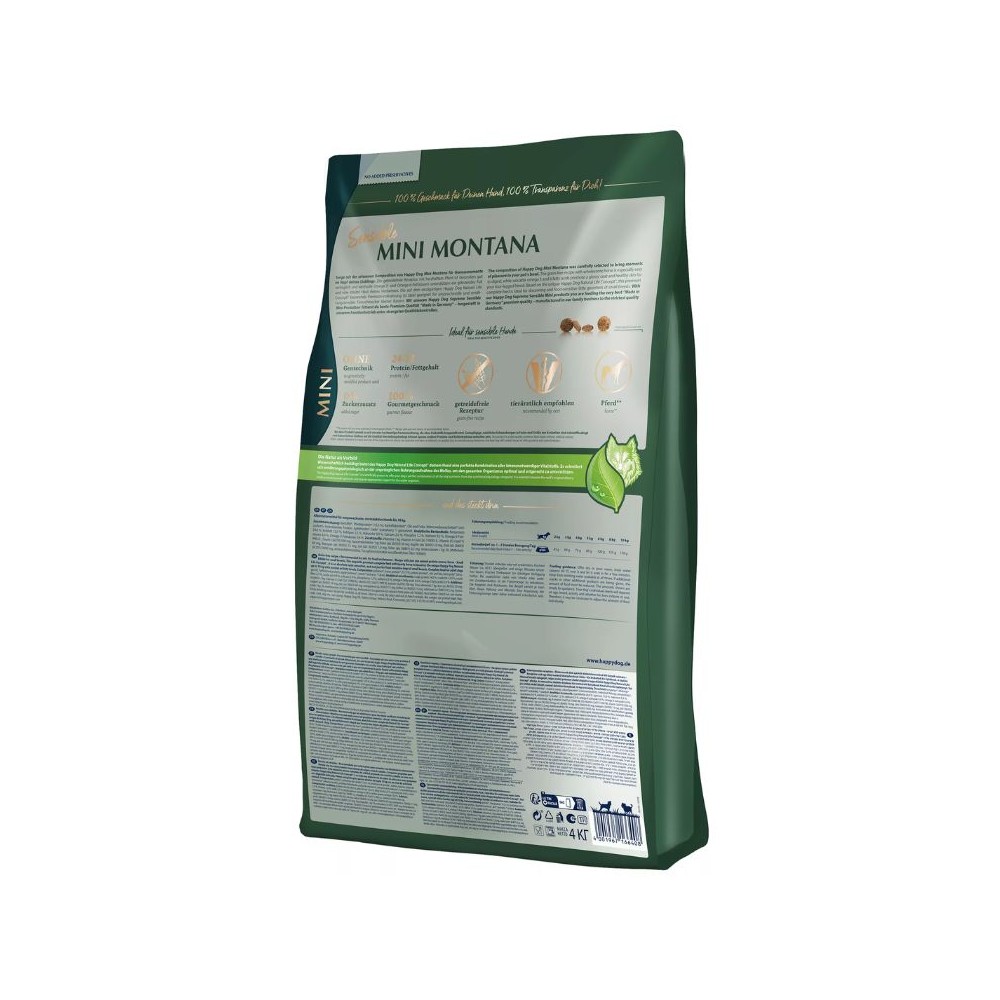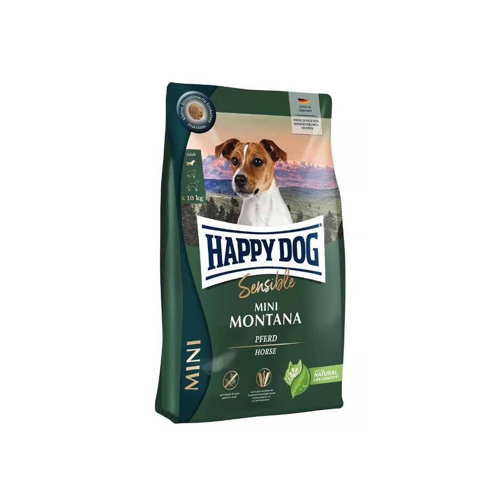 Happy Dog Mini Montana visavertis pašaras suaugusiems mažų veislių šunims su arkliena, 4 kg