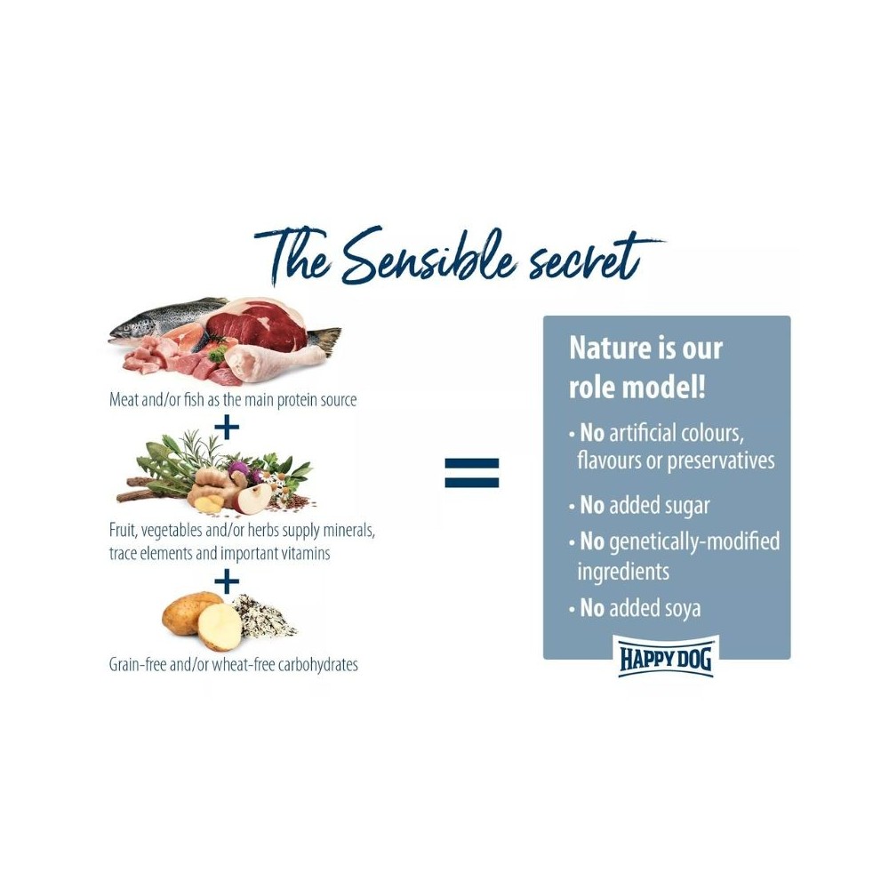 Happy Dog natūralaus gyvenimo koncepcija – sujungti svarbiausius ingredientus ir užtikrinti, kad Jūsų šuns organizmui būtų suteikta viskas, kas yra reikalinga, kad augintinis turėtų pilnavertį gyvenimą: nuo stiprios imuninės sistemos iki sveiko kailio.