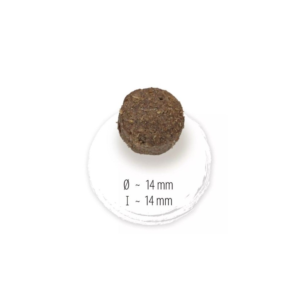 Analitinės sudedamosios dalys: žali baltymai 22,0%, žali riebalai 9,0%, žalia ląsteliena 3,0%, žali pelenai 5,0%, kalcis 0,9%, fosforas 0,6%, natris 0,25%, kalis 0,6%, magnis 0,1%, Omega-6 riebalų rūgštys 1,5%, Omega-3 riebalų rūgštys 0,2%.
