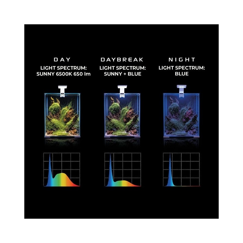 „Leddy Smart Sunny Day & Night“ yra minimalistinė LED lempa skirta mažiems akvariumams. Atsižvelgdami į savo poreikius, galite pasirinkti vieną iš trijų apšvietimo režimų – dviejų skirtingų dienos šviesos ir mėlynos nakties šviesos. Su šia LED lempa savo akvariumu galėsite grožėtis bet kuriuo paros metu.