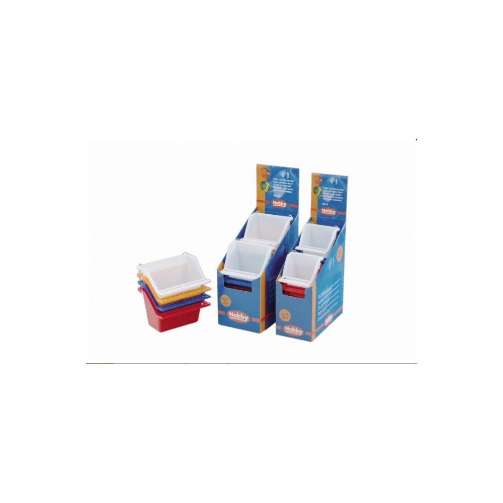 Pakabinama, plastikinė lesyklėlė paukščiams su laktele. Talpa: 60 ml. Gali būti naudojama vandeniui arba lesalui. Pakelta galinė sienelė apsaugo nuo aptaškymo.