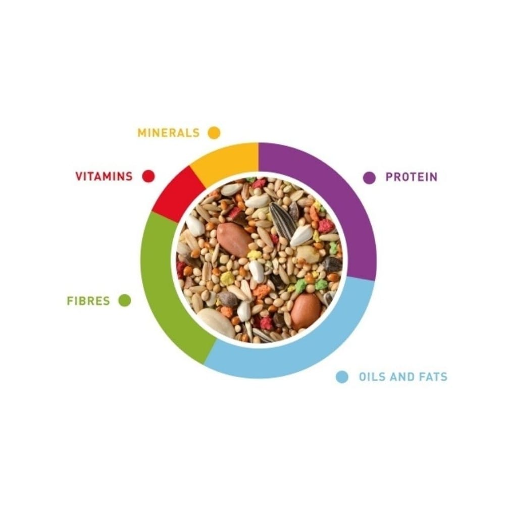 Tai rūpestingai parinktų grūdų ir saklų mišinys su džiovintais vaisais, kepinukais, smulkintomis kriauklėmis, vitaminais ir mikroelementais. Šis lesalas skirtas vidutinėms papūgoms – nimfoms, neišskiriamiesiems (Agaporniams). Aukštos kokybės ingredientai užtikrina kasdieninius paukščio poreikius.