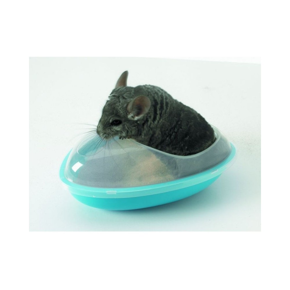 Šinšiloms labai patinka švara ir maudynės. Dėl to labai svarbu, kad narvelyje būtų maudyklė su specialiu smėliu, skirtu šinšiloms praustis. Maudyklė plastikinė, su dangčiu, tad būsite tikri, kad augintinis smėliuko neiškapstys. Plati anga, užtikrins patogų gyvūno patekimą į maudyklę.