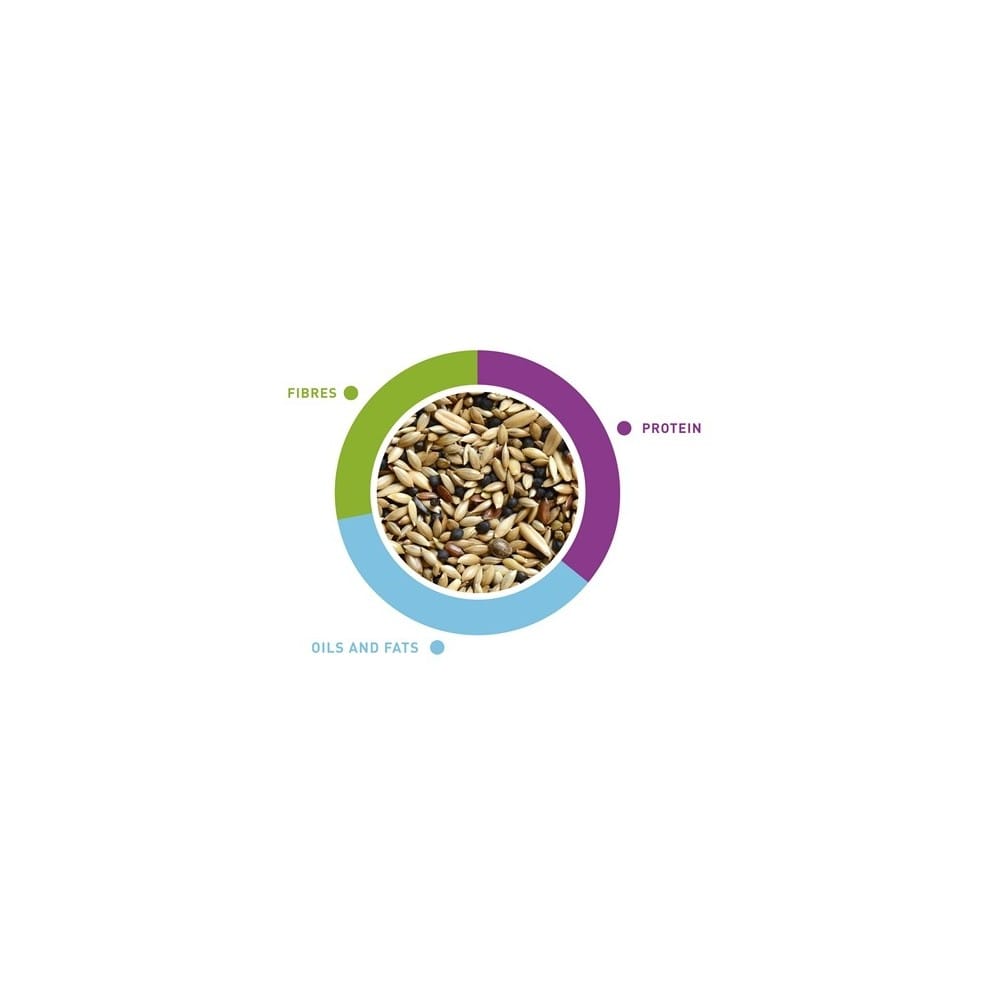 Šėrimo rekomendacijos: įpilkite į dubenėlį ir leiskite paukščiui lesti pagal jo poreikius. Pasirūpinkite, kad kasdien būtų šviežio vandens.