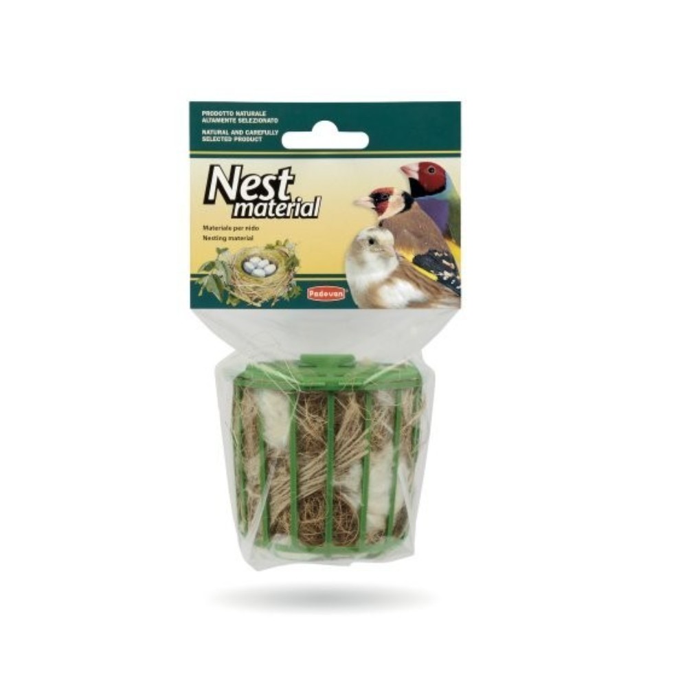 Medžiagų, skirtų paukščių lizdams sukti, mišinys (džiutas, sizalis, kokosų ir medvilnės pluoštai). Lengvai pritvirtinsite laikiklį prie narvo grotelių.