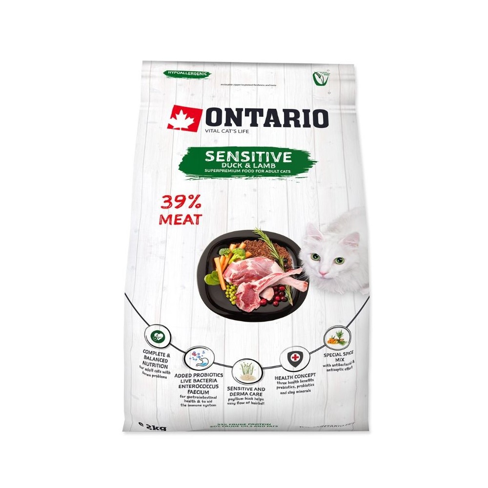 Ontario visavertis pašaras suaugusioms katėms Cat Sensitive, 2 kg