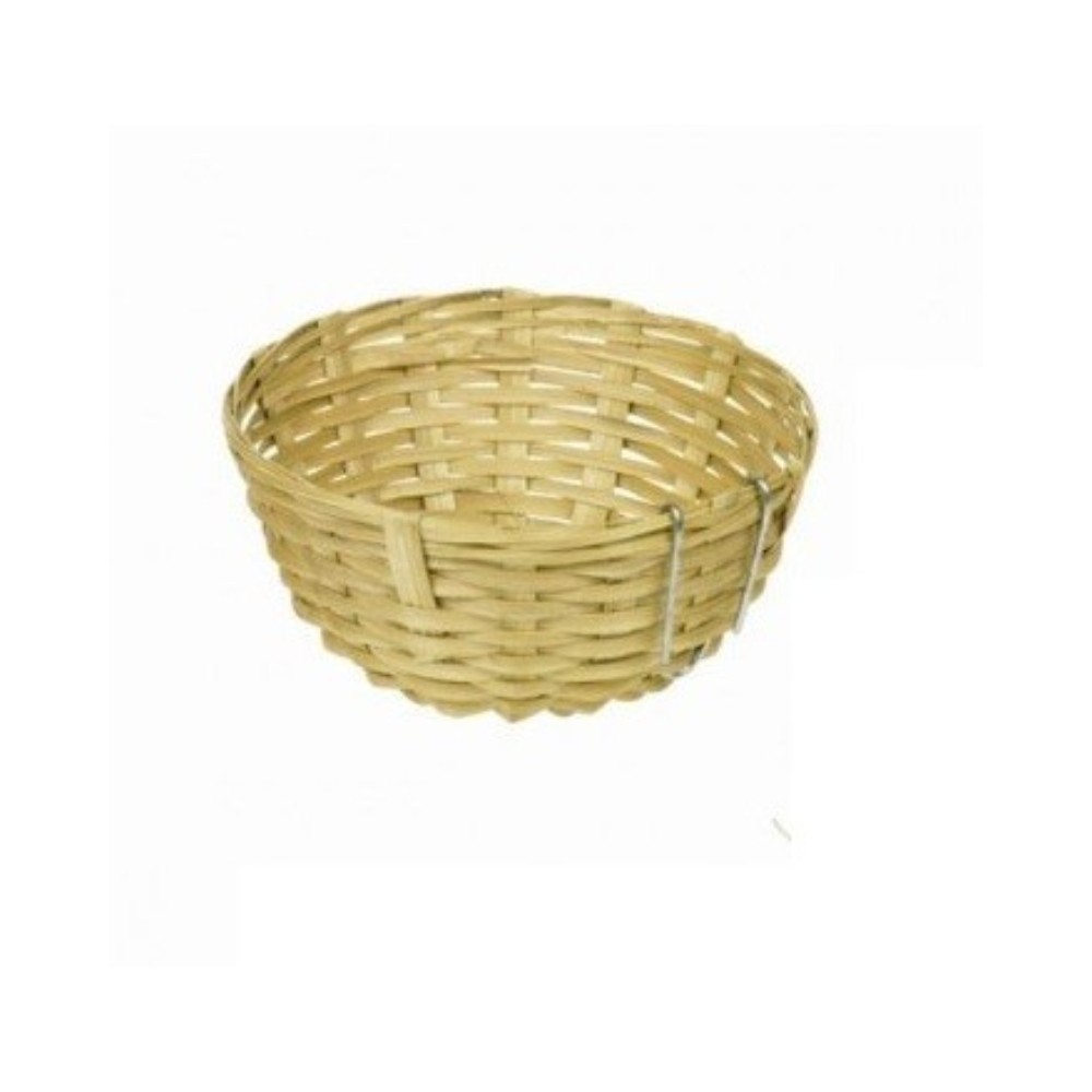 Iš bambuko juostelių pintas lizdelis, skirtas narveliuose auginamiems dekoratyviniams paukščiams, dydis 13×6 cm