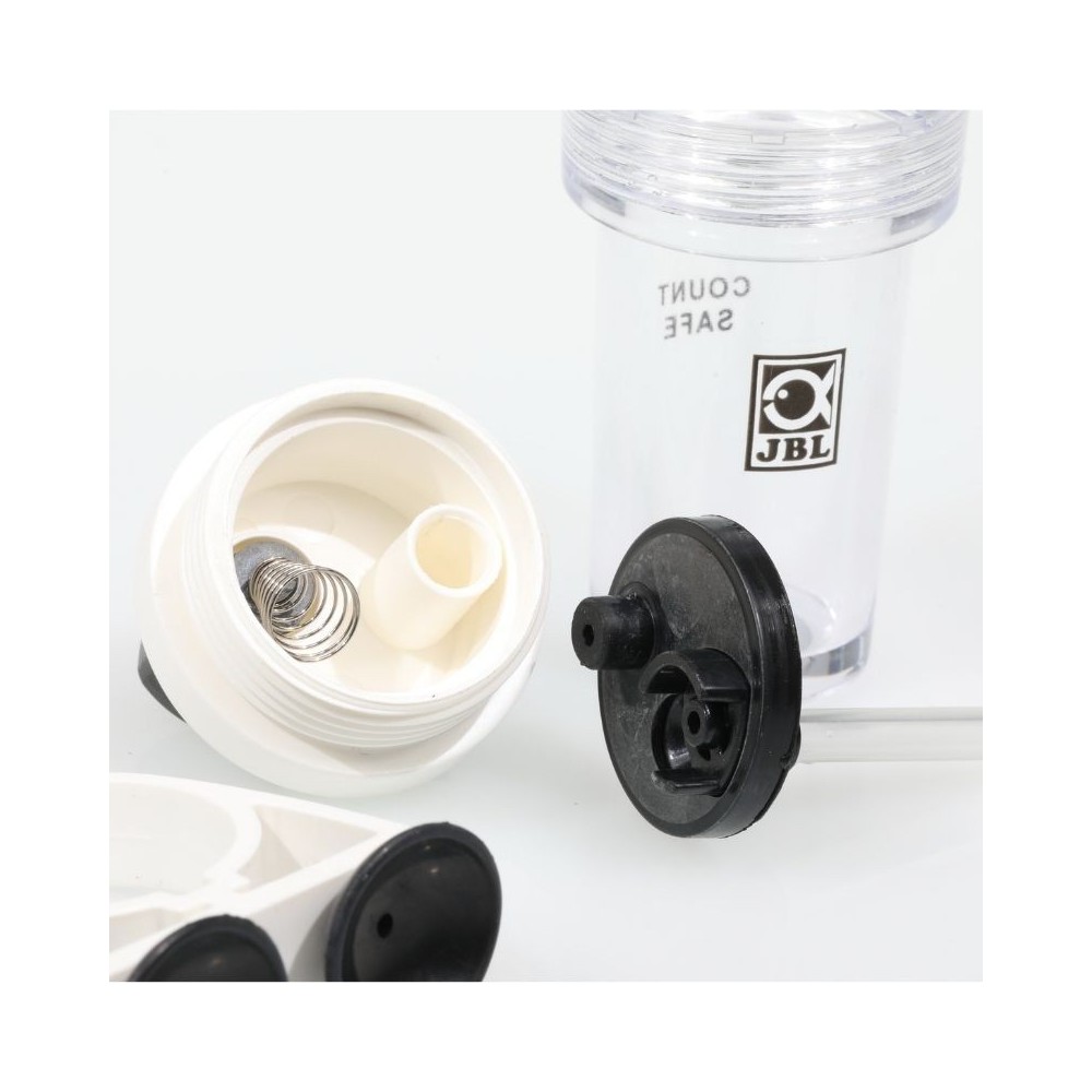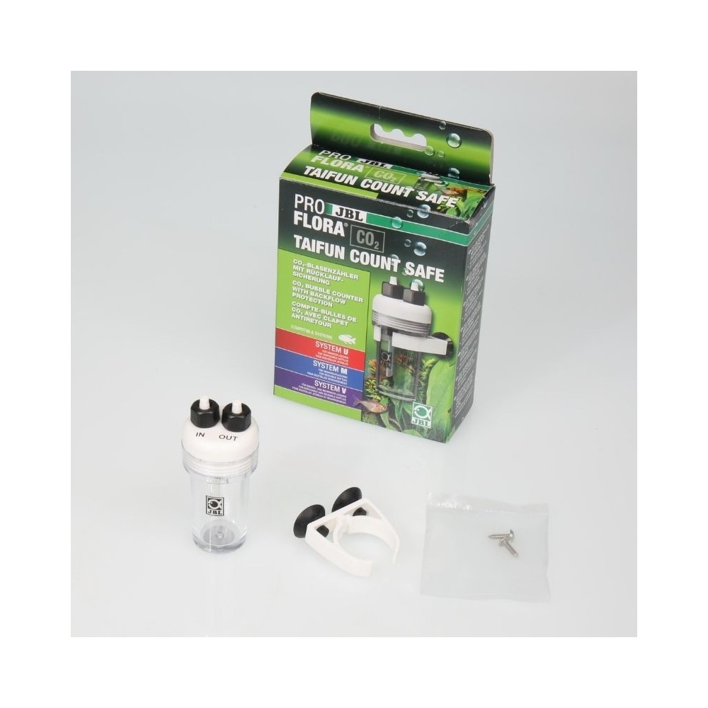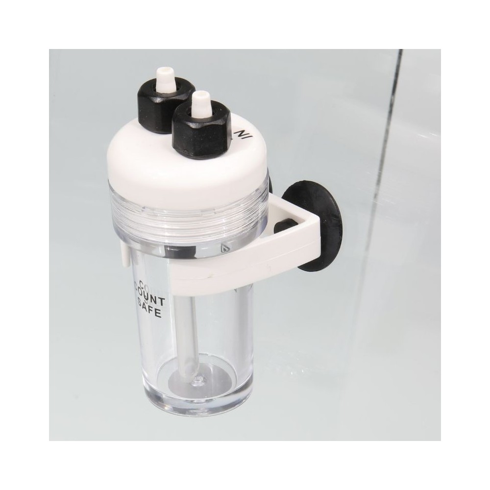 Naudojimas: užpildykite burbulų skaitiklį vandeniu, prijunkite žarna prie CO2 sistemos ir difuzoriaus, pritvirtinkite akvariumo išorėje su dviem siurbtukais ant stiklo arba dviem varžtais ant baldų.