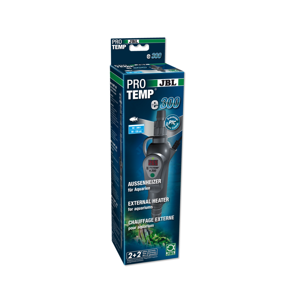 Pakuotėje yra: 300 W išorinis šildytuvas akvariumui nuo 90l iki 300 l (80-120 cm) su žarnų jungtimis 12/16, 16/22 ir 19/25 mm ir valymo šepetėliu.