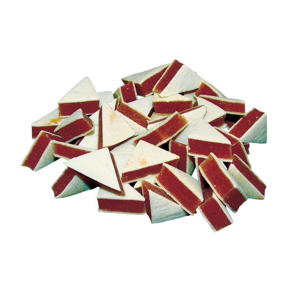 Mažus trikampius sumuštinius primenantys skanėstai mažiems šunims su vištiena ir lašiša, 70 g.