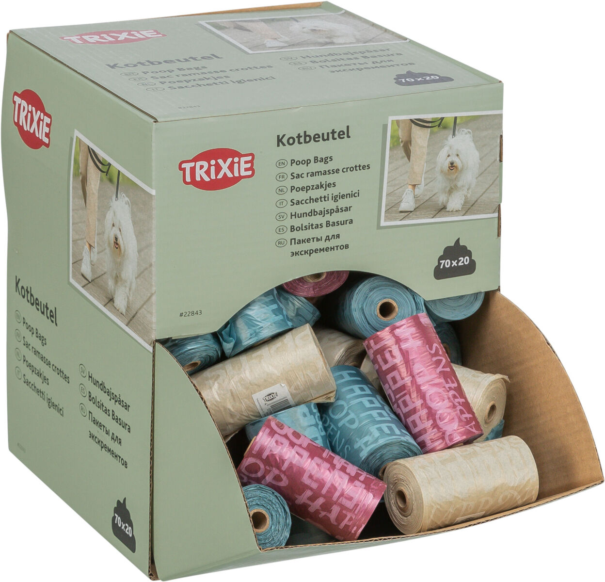 Plastikiniai maišeliai išmatoms. Rulone 20 maišelių.