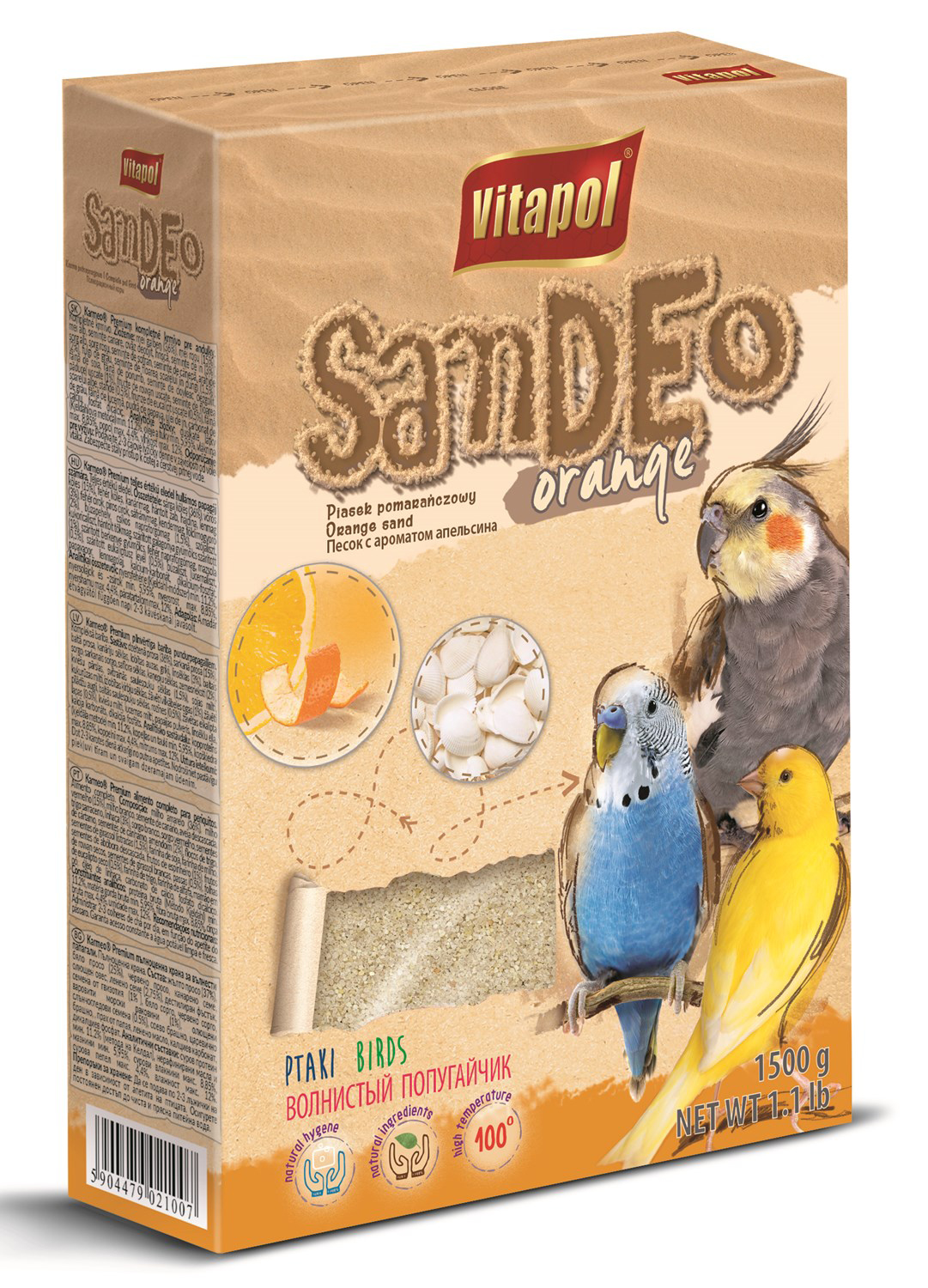 VITAPOL® apelsininis smėlis – puikus sprendimas norint palaikyti paukščio narvo švarą. Gaivaus kvapo ir praturtintas smulkiai sumaltais austrių lukštais, produktas ne tik užtikrina higieną, bet ir aprūpina paukščio sveikata svarbiais mikro ir makroelementais.