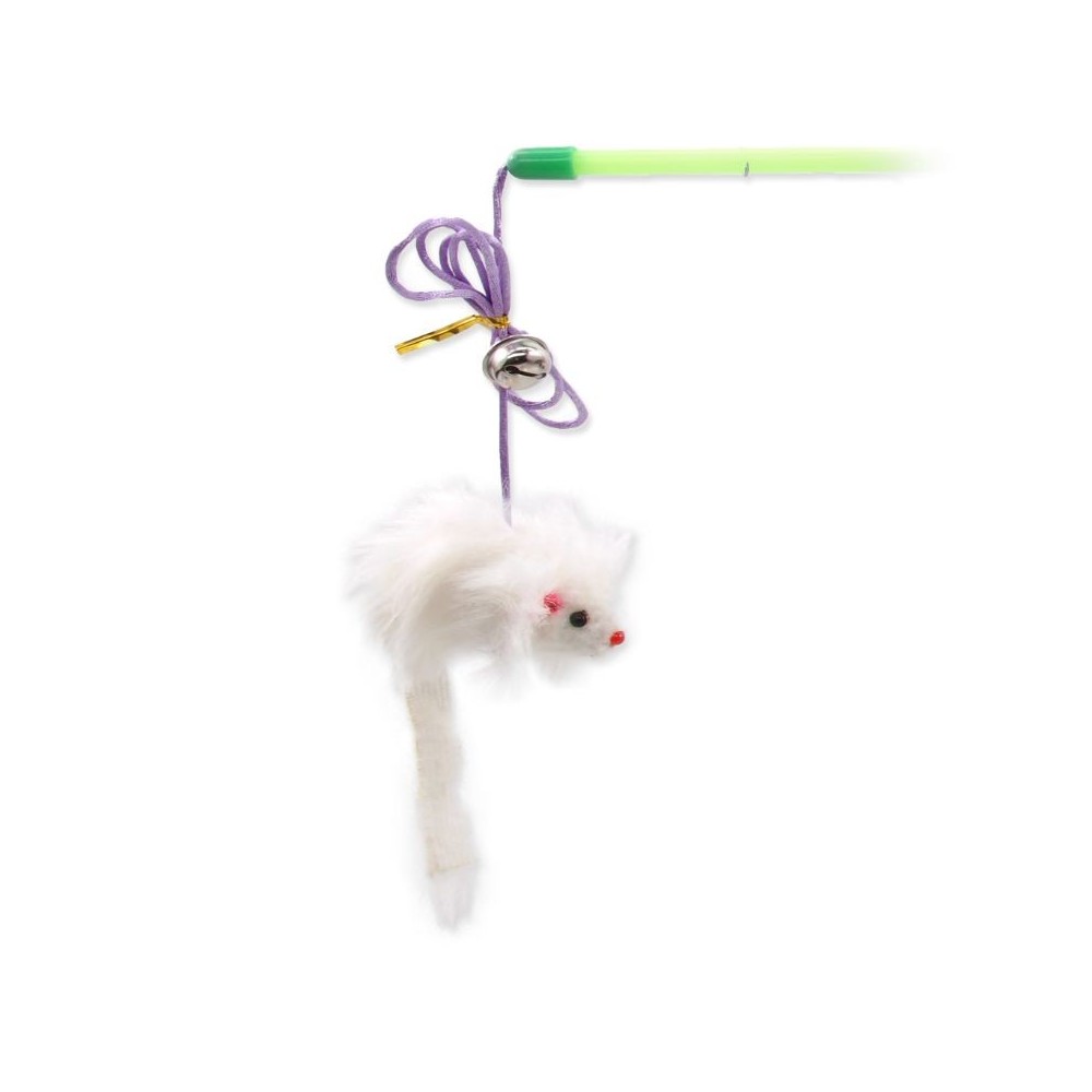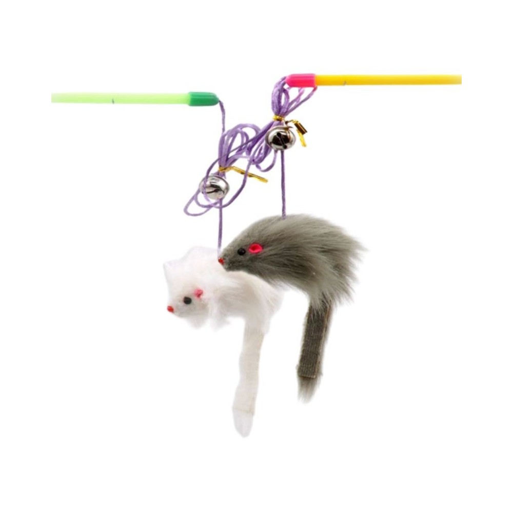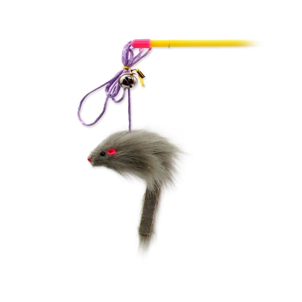 Žaislas katėms meškerė su barškančia pelyte ir kamuoliuku, 17+49 cm